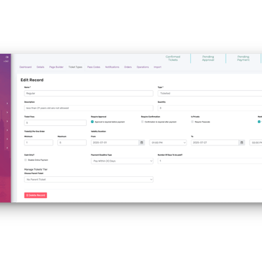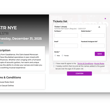 Create and manage ticket types — VIP, Early Bird, General Admission, Invite-Only — with unique pricing, availability, and schedules.