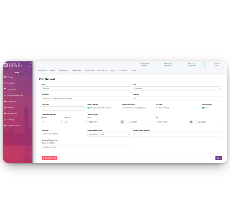 FOH Pass is a powerful event ticketing and guest management system designed for hospitality venues. Manage every detail — from ticket types and approvals to guest check-in and post-event analytics — all in one place.